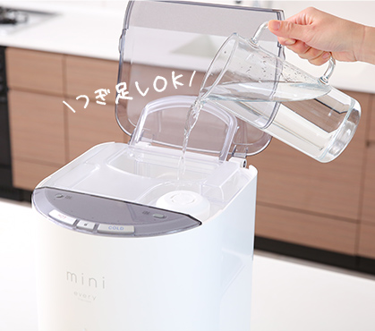 でも、タンク容量が8.7リットル(ミニは5.0リットル)なので、少々継ぎ足し忘れても大丈夫!子育てママからの支持が高いです。