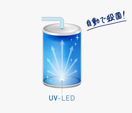 殺菌効果のある光を定期的に照射して水を新鮮な状態に保ちます。