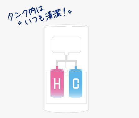 タンクの中の水は空気に触れることがないため、清潔な状態に保ちます。