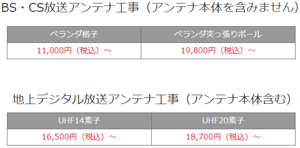 (引用元:ビックカメラ「アンテナ 設置工事のご案内」)
