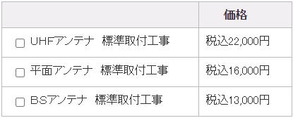 アンテナ工事では表示の料金以外にも費用が発生する可能性があります。