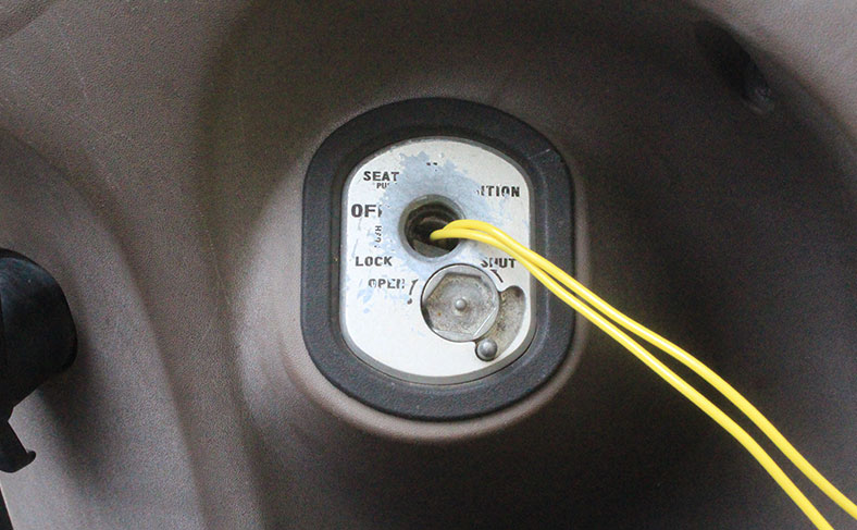 鍵穴につっこんで回す方法とシートの隙間に差し込んで開けるのいずれかで開けられます。