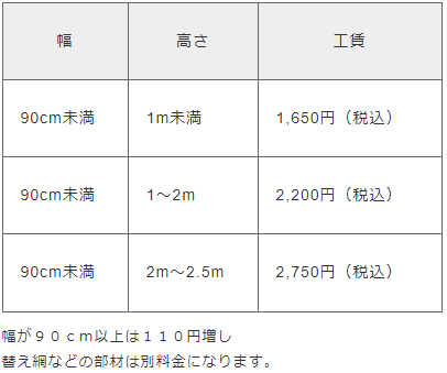 ダイユーエイトの網戸張り替え料金