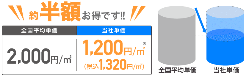 シロアリ防除施工士が協会指定の薬剤を使って、1平方メートルあたり1,320円(税込)と格安で駆除してくれるのが魅力